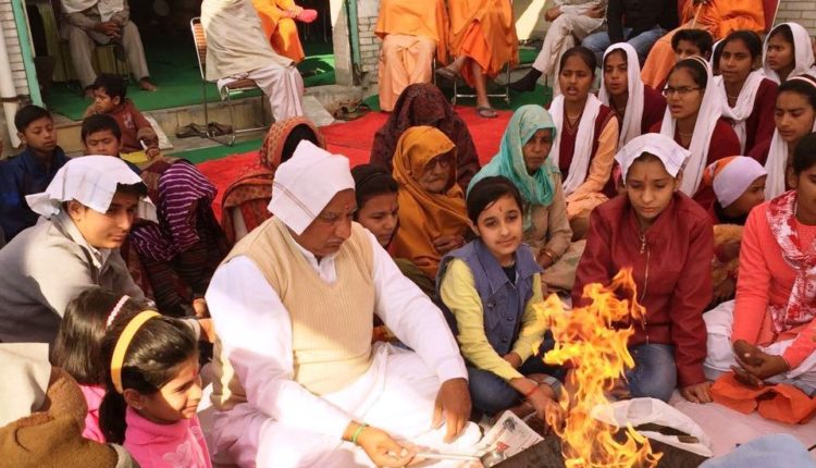फोटो कैप्शन 1,2 :- चौगान माता पर आयोजित हवन यज्ञ में आहुति डालते हुए कर्मबीर राठी व मंदिर समिति के सदस्य।